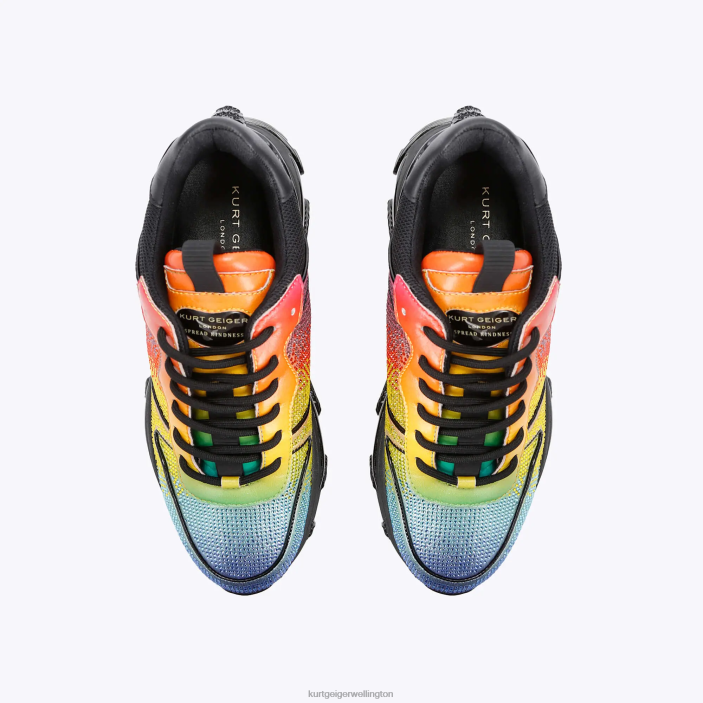 The Lettie Eagle Men's is a lace up sneaker with an ombre rainbow upper that is embellished with corresponding crystals. The back of the ankle features a molded black Eagle head.